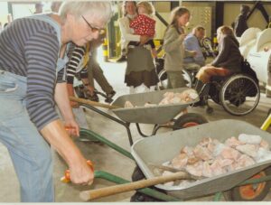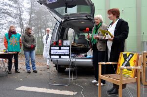 Sie hatte dabei eine wunderbare Idee: Damit Ältere, die nicht auf der Straße oder Schiene hocken wollten oder konnten, wurden Stühle besorgt und sie lud an der Castorverladestation in Dannenberg ein zur „Stuhlprobe“. Schon bei der Wahl des Aktionsangebotes musste man schmunzeln. Auf die Strecke ging es anschließend mit dem Fahrrad von dort aus zum Zwischenlager in Gorleben.