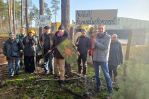 Fast zeitgleich zur Demo vor den Zwischenlagertoren in Ahaus umrundeten am dritten Advent Aktivistinnen und Aktivisten in Gorleben das baugleiche Lager. Der sonntägliche Spaziergang an den Atomanlagen in Gorleben, der normaler Weise rund um das ehemalige Endlagerbergwerk stattfindet, führte aus Solidarität mit Ahaus rund um das Gelände mit den beiden Atommülldeponien.