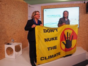 Aktivist*innen der Initiative „Don’t nuke the climate“ haben heute (12.12.18) im polnischen Katowice mehrere tausend Unterschriften an die deutsche Bundesumweltministerin Svenja Schulze überreicht. Schulze versprach, keine Pro-Atom-Statements auf dem COP zu unterstützen.