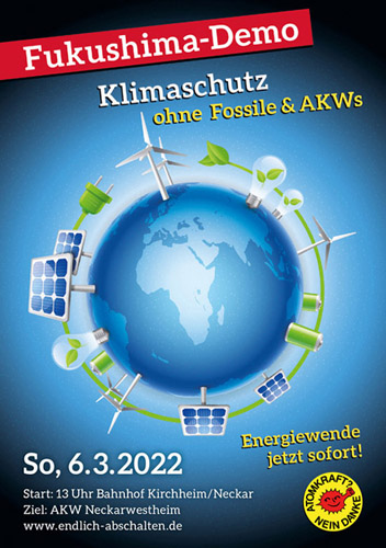 Die BI unterstützt die Mobilisierung zur Fukushima-Demonstration am 6. März zum AKW Neckarwestheim. Infos: www.endlich-abschalten.de